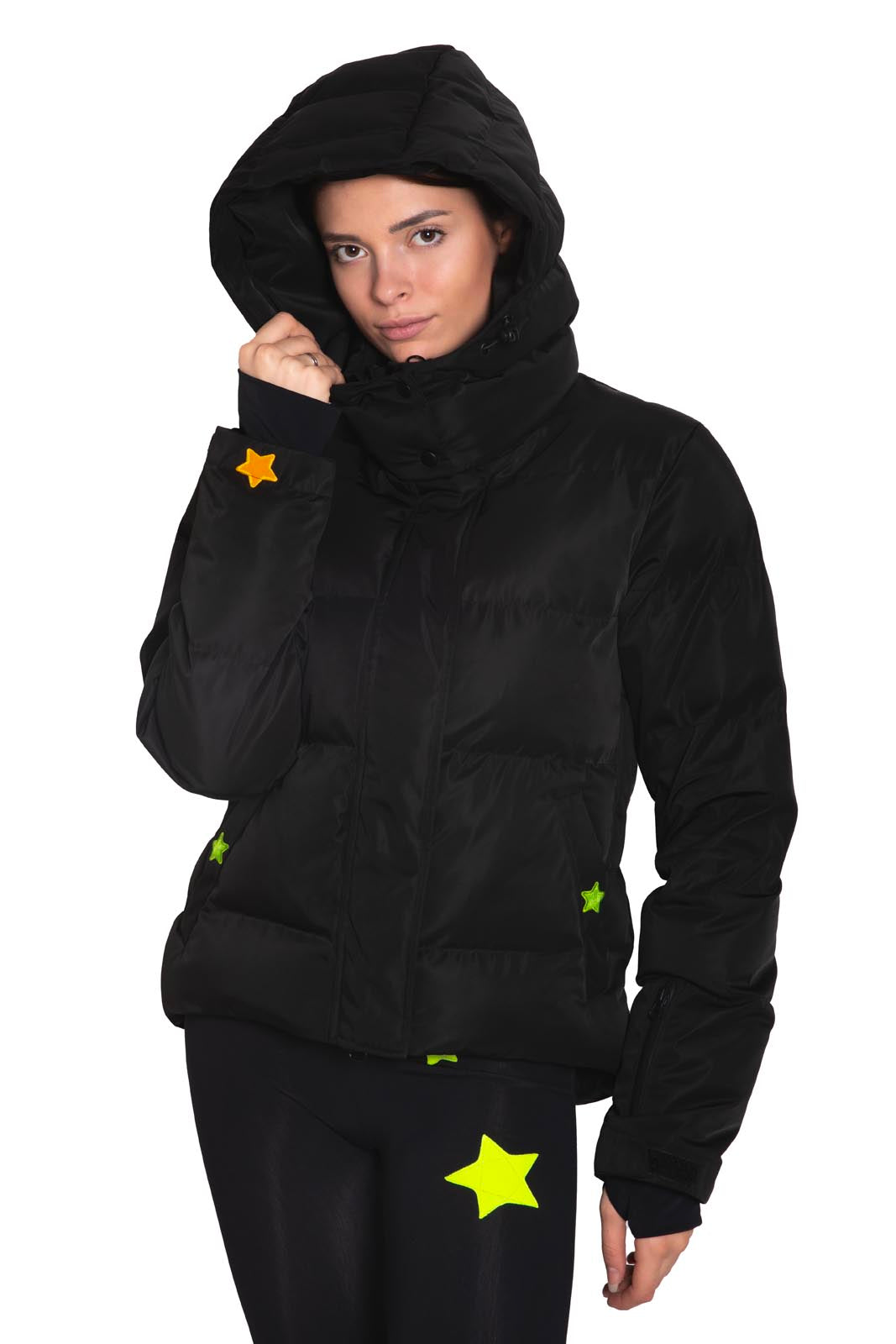 An internal windproof gaiter provides protection from gusts, while waterproof zippers keep you dry on the slopes.