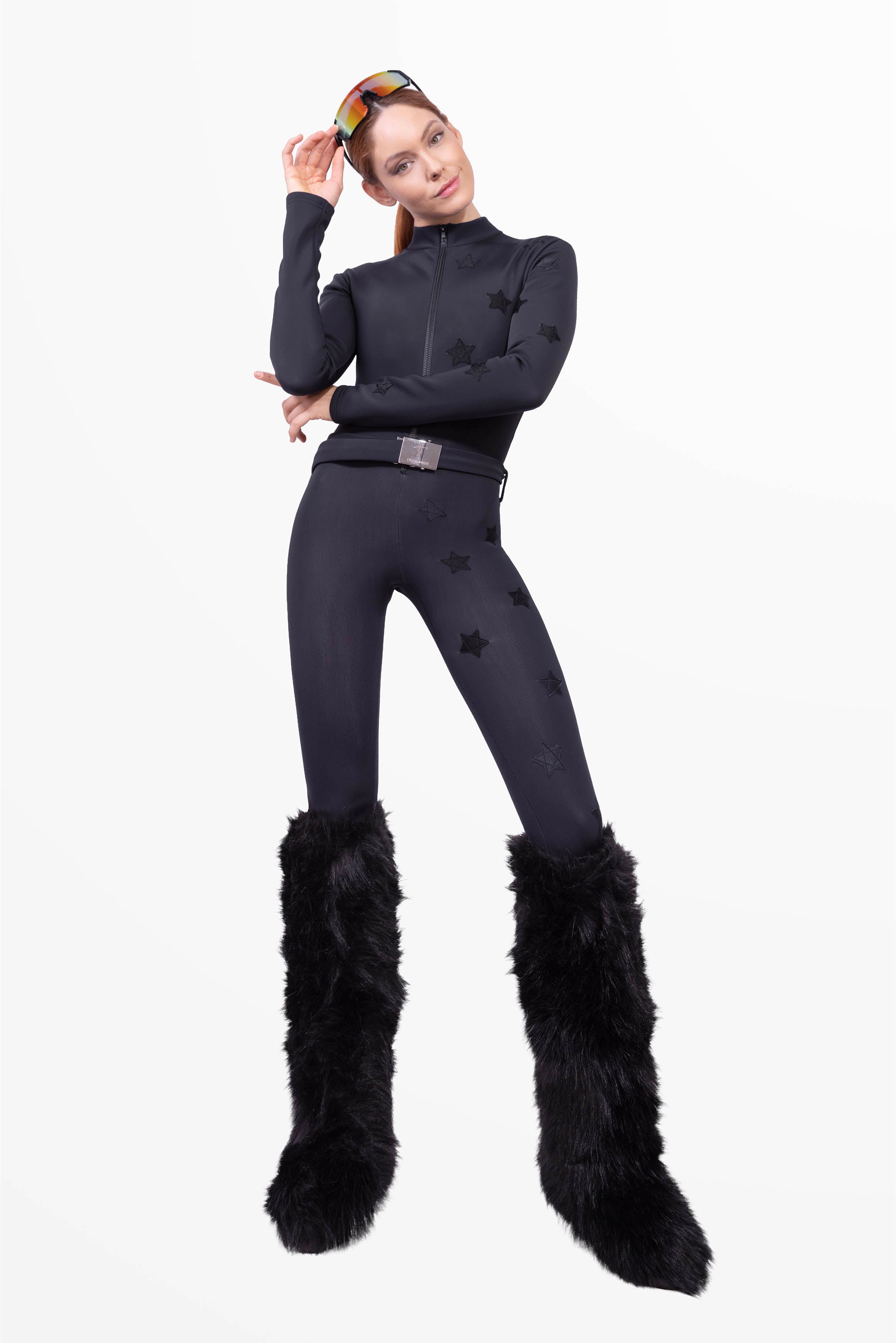 A dramatic, feminine and extraordinarily elegant ski suit, designed to shine on the slopes and in après-ski moments.