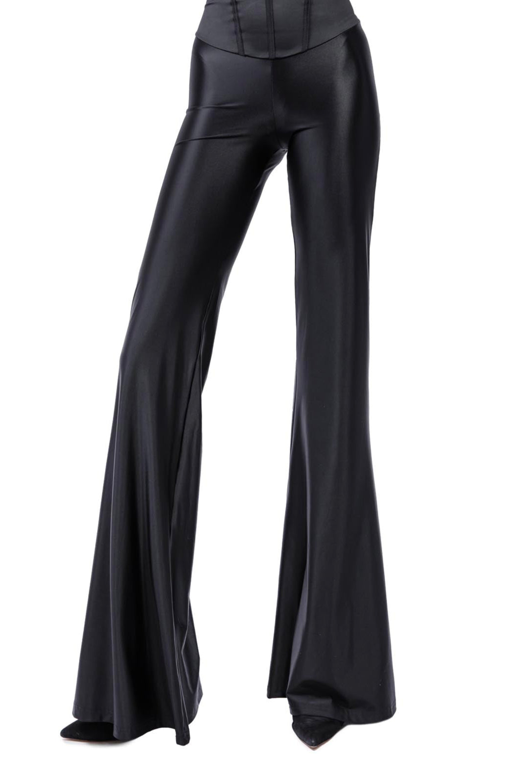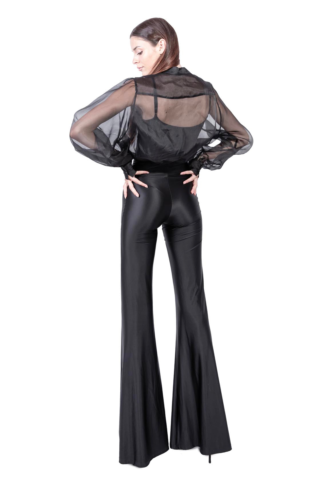 The silk-effect Lycra trousers caress the skin with a silky feel, gently shaping the body.